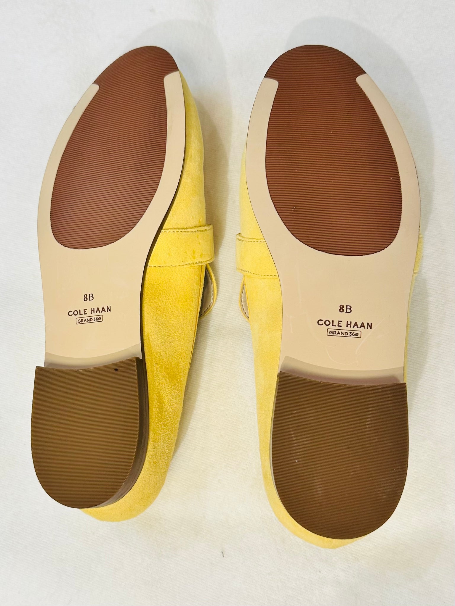 COLE HAAN Grandseries Yellow Suede Loafers with Silver Hardware Size 7 (preowned)