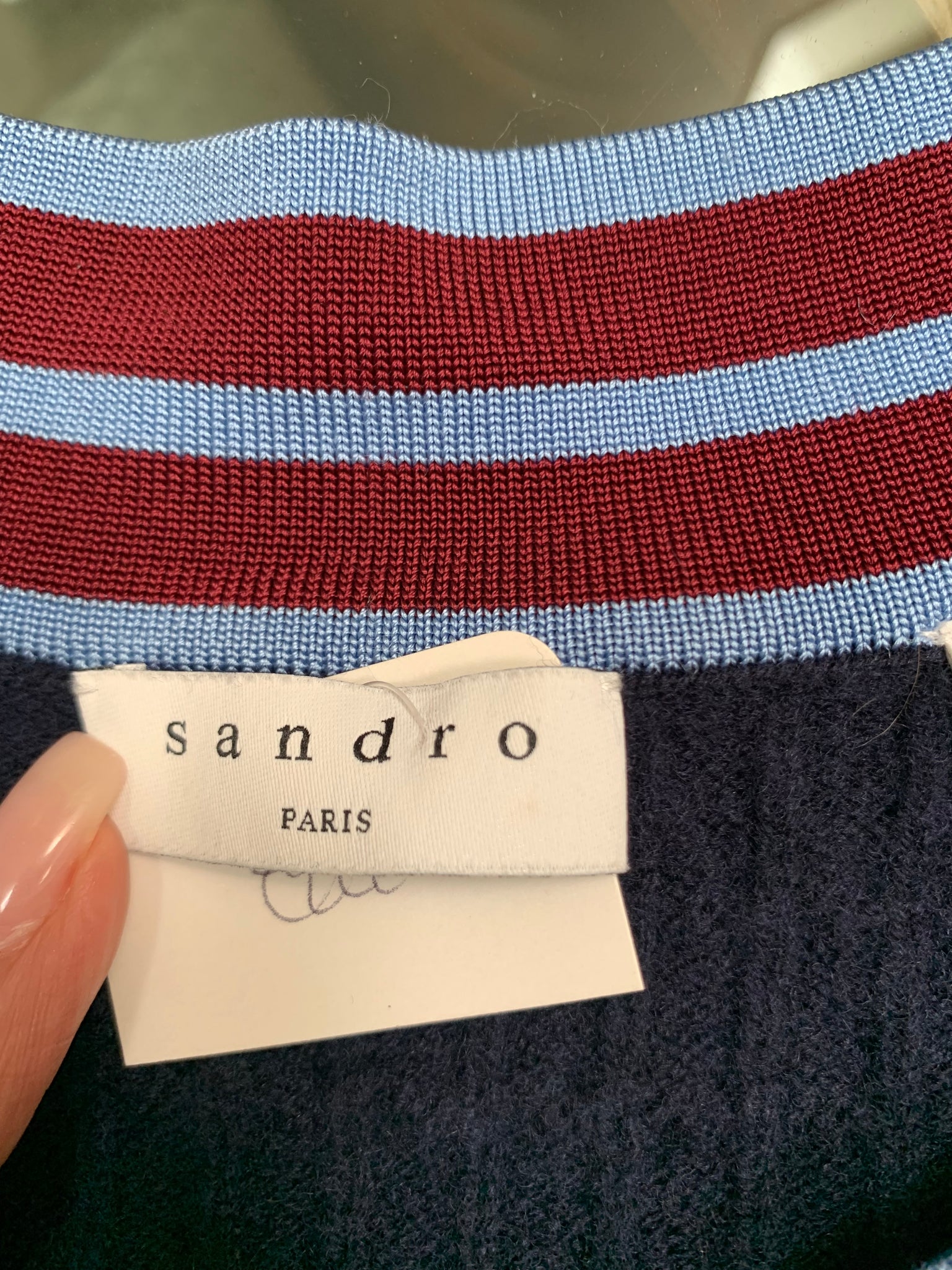 Sandro Navy Blue V-Neck Sweater with Red and Blue Accents (unisex) S:1 (preowned)