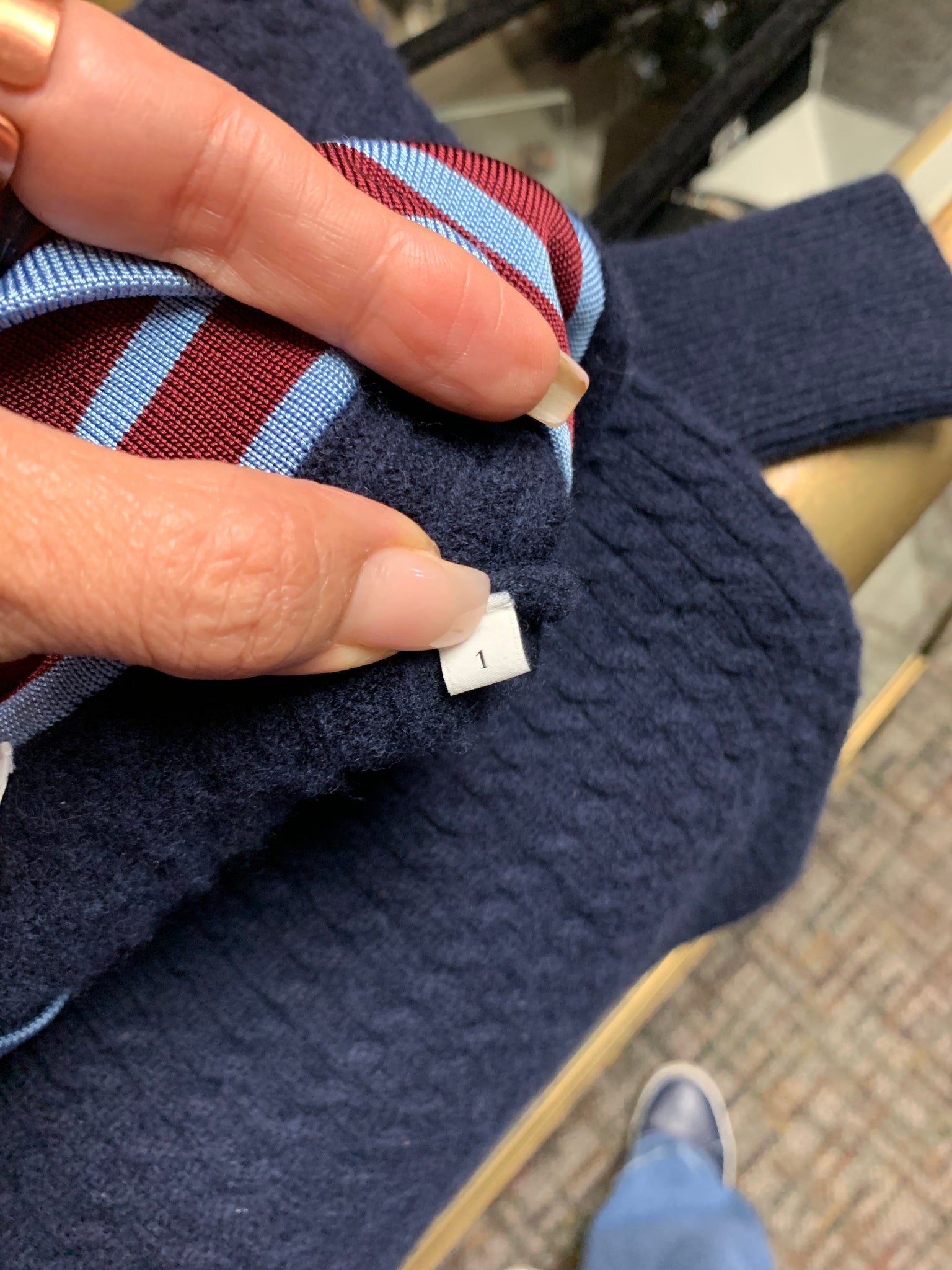Expertly crafted, this preowned Sandro Navy Blue V-Neck Sweater is designed with red and blue accents for a pop of color. Made from high-quality materials, it is both stylish and comfortable. Perfect for a casual or formal look, it is a versatile addition to any wardrobe.