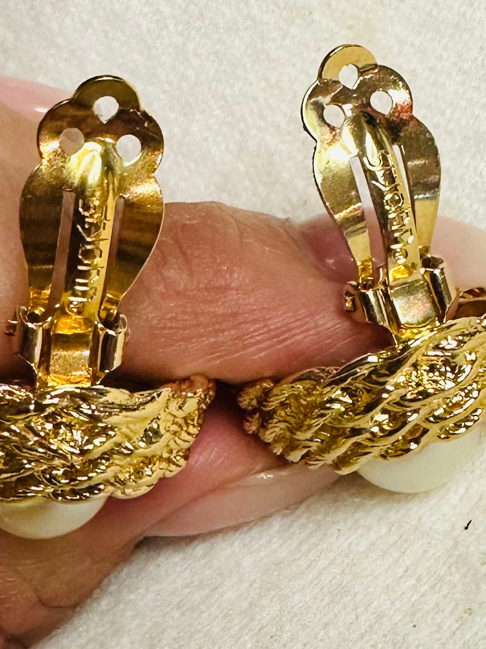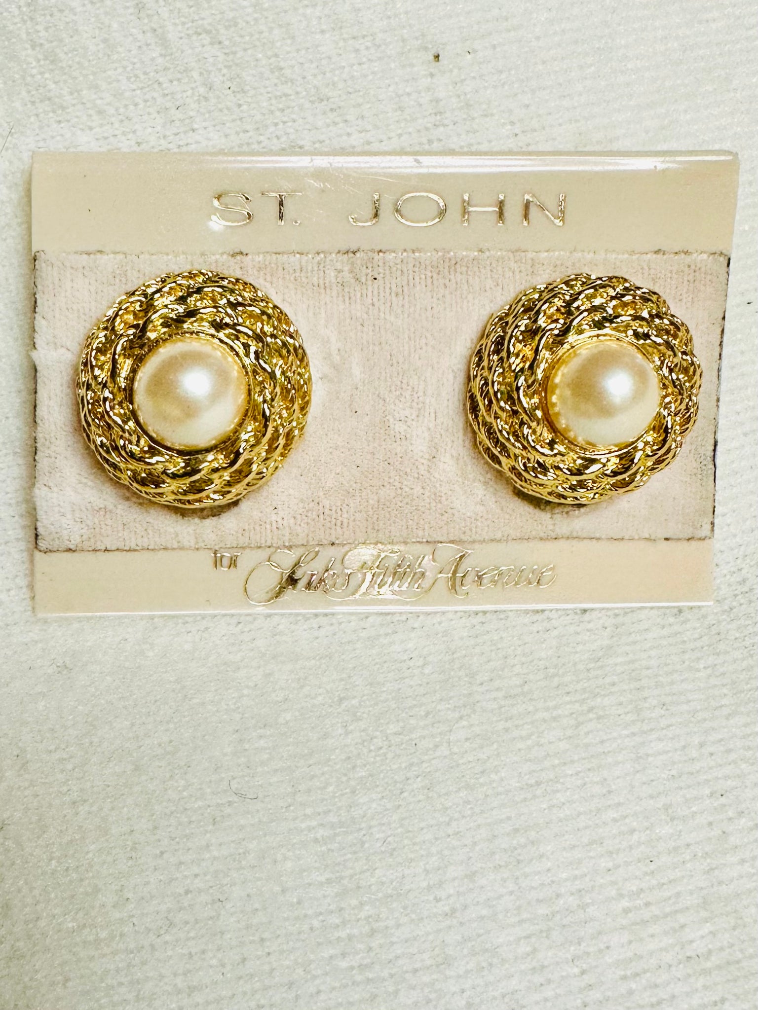 St. John Gold-Tone Earrings with Pearl Accent ( preowned)