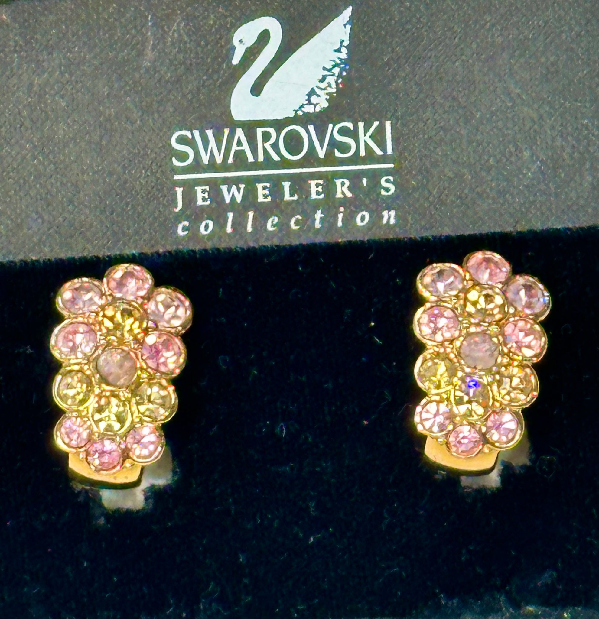 Swarovski Gold Earrings with Pink Crystals (preowned)