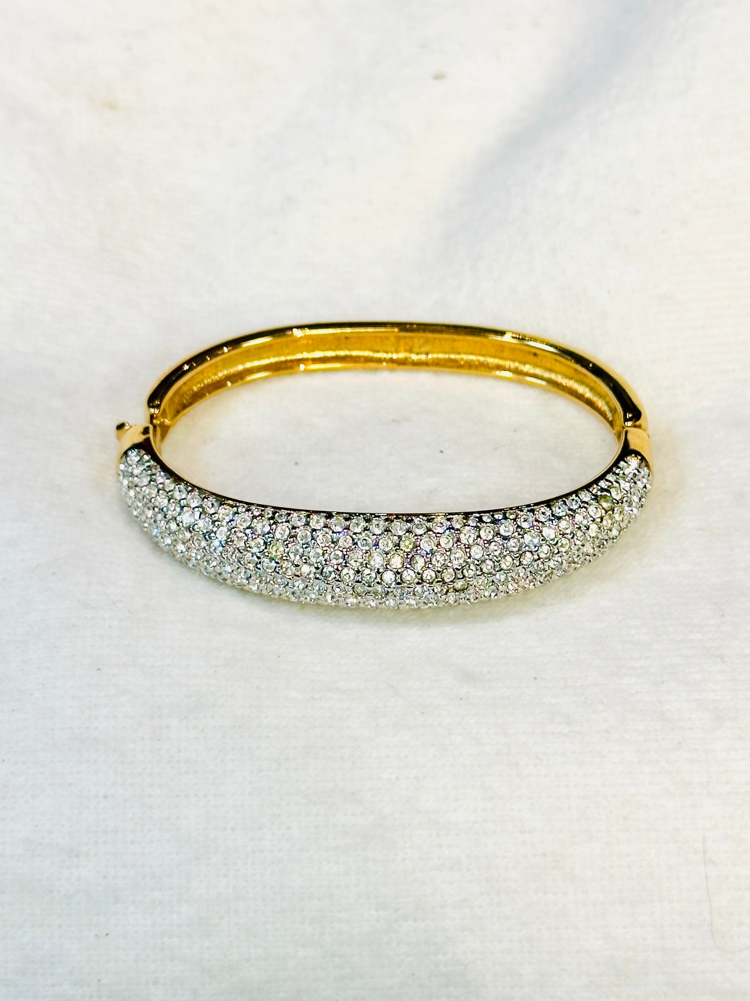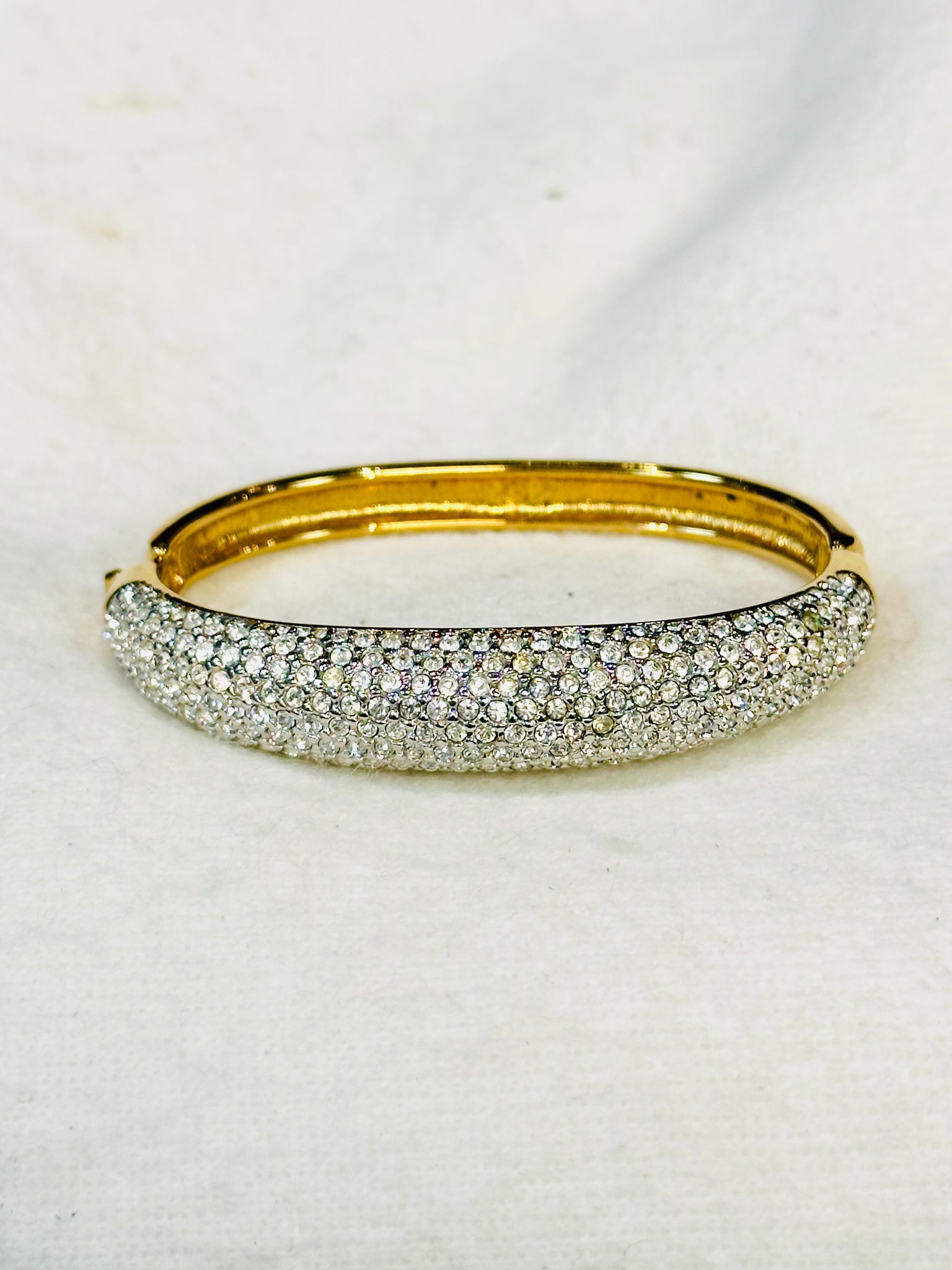 Vintage Swarovski Gold Plated Clear Crystal Hinged Bangle Bracelet (preowned)